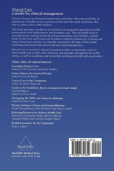 Using practical examples this book demonstrates how a theoretical model for shared care operates in practice to deliver improved health outcomes within limited resources. It shows how clinically-led initiatives can influence health care commissioning strategies and how the implementation of the model meets the needs of clinicians purchasers and providers. The model and evaluation protocols advocated here provide a firm foundation for the development of shared care in the future.