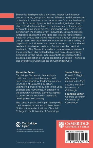 This Element provides a comprehensive review of the research on shared leadership, as well as point to promising directions for the future, both in terms of research as well as the practical application of shared leadership in action. This title is also available as Open Access on Cambridge Core.
