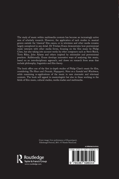 Contents: Foreword, Michael Riesman Introduction Glass, postminimalism and the media: initial questions and contexts 'The satisfaction of a drive': postminimal music and the advertising media Postmodern unfoldings? Narrative, temporality and repetition in postminimal music 'Notes on a soundtrack': reading Glass's recent film scores Metamorphic meanings in Glass's intertextual soundtracks This is (not) a soundtrack: Dracula the movie or music drama? Existential conflict in Naqoyqatsi, Book of Longing and Watchmen Conclusions: reviewing concepts and approaches Bibliography Electronic resources Selected discography Selected filmography Artworks Index.