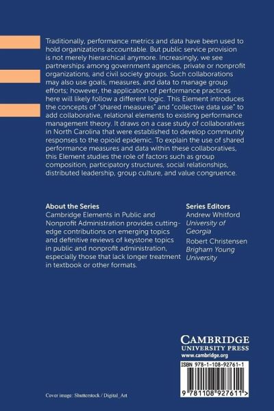 This Element introduces the concepts of â shared measuresâ and â collective data useâ to add collaborative, relational elements to existing performance management theory. It draws on a case study of collaboratives in North Carolina that were established to develop community responses to the opioid epidemic.