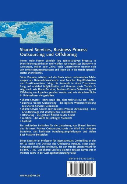 Dieses Buch über Shared Services, Business Process Outsourcing und Offs- ring reflektiert die intensive Erfahrung mit der Materie aus der Sicht des Unt- nehmensberaters und Forschers. Seit nunmehr acht Jahren habe ich in diversen Klientenprojekten die reale Anwendung, Weiterentwicklung und Umsetzung des Shared-Services-Gedankens erleben dürfen. In den letzten Jahren spielten die Aspekte BPO und Offshoring eine besondere Rolle, und in diesem Zug konnte ich Unternehmen helfen, Standorte im globalen Service Business zu finden und Center in Ländern wie Ungarn oder Indien aufzubauen. "Mittendrin statt nur dabei" hat sich hier auch als probate Forschungsstrategie gezeigt, kann man die Komplexität und Herausforderungen dieser Ansätze doch nur verstehen, wenn man unmittelbar in die Praxis von Shared Services, BPO und Offshoring ein- bunden ist. Neben den vielen praktischen Erkenntnissen, die in diesem Buch dargelegt w- den sollen, ist es aber auch mein Anliegen, eine wissenschaftliche Diskussion des Themas anzustoßen. Die theoretischen Beiträge zu Shared Services halten sich bislang in Grenzen, die wissenschaftlichen Aspekte werden - wenn üb- haupt - nur am Rande diskutiert. Dabei greifen Shared Services massiv in die organisationstheoretischen Grundlagen der Betriebswirtschaftslehre ein. BPO stellt die gesamte Theorie der Unternehmung und die Prinzipien der funktio- len Arbeitsteilung in Frage, und Offshoring befasst sich mit den übergeordneten wirtschaftspolitischen Fragen der optimalen Allokation von Arbeit.