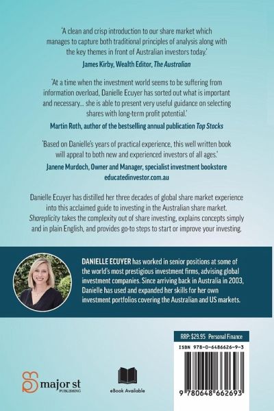 Danielle Ecuyer has distilled four-decades of global share market experience into this handy guide to investing in the share market. In Shareplicity, she takes the complexity out of share investing, explains concepts simply and in plain English, and provides go-to steps to get started. With property prices climbing to ever more unaffordable levels and interest on cash in the bank at all-time lows, more and more smart investors are looking at shares. Here’s why: Shares have consistently produced above average long-term performance. You don’t need large sums of money to start investing in shares. There are no hassles or stress over debt and mortgages, no tenants and no maintenance costs as there are with property investing. There’s potential for capital appreciation and income streams. Whether you’re saving for a deposit, a holiday, the kids’ education or a comfortable retirement, share investing offers the flexibility and ease for anyone at any age or stage in life. Shareplicity is a great way to learn!