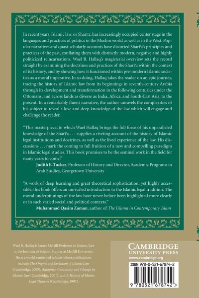 Wael Hallaq's magisterial overview of Shari'a examines the doctrines and practices of Islamic law from the seventh century to the present. In a compelling narrative, the author unravels the complexities of his subject to reveal a deep knowledge of the law which will engage and challenge both student and scholar.