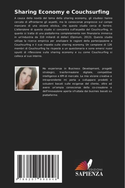 A causa della novità del tema della sharing economy, gli studiosi hanno cercato di affrontarne gli aspetti, ma le conoscenze pregresse sul campo mancano di una visione olistica, che questo studio cerca di fornire. L'attenzione di questo studio si concentra sull'aspetto del Couchsurfing, in quanto si tratta di una piattaforma completamente non finanziaria immersa in un'industria da 310 miliardi di dollari (Opinium, 2013). Questo studio utilizza la ricerca empirica per analizzare le ragioni della partecipazione a Couchsurfing e il suo impatto sulla sharing economy. Un campione di 126 membri di Couchsurfing ha risposto a un questionario e sono emersi nuovi spunti di riflessione sulla sharing economy e su come Couchsurfing si colloca al suo interno.