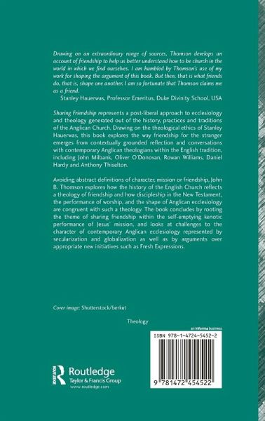 Sharing Friendship represents a post-liberal approach to ecclesiology and theology generated out of the history, practices and traditions of the Anglican Church. Drawing on the theological ethics of Stanley Hauerwas, this book explores the way friendship for the stranger emerges from contextually grounded reflection and conversations with contemporary Anglican theologians within the English tradition, including John Milbank, Oliver O'Donovan, Rowan Williams, Daniel Hardy and Anthony Thiselton. Avoiding abstract definitions of character, mission or friendship, John Thomson explores how the history of the English Church reflects a theology of friendship and how discipleship in the New Testament, the performance of worship, and the shape of Anglican ecclesiology are congruent with such a theology. The book concludes by rooting the theme of sharing friendship within the self-emptying kenotic performance of Jesus' mission, and looks at challenges to the character of contemporary Anglican ecclesiology represented by secularization and globalization as well as by arguments over appropriate new initiatives such as Fresh Expressions.