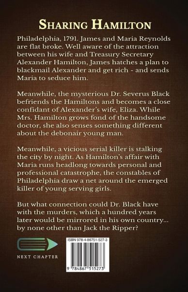 Philadelphia, 1791. James and Maria Reynolds are flat broke. Well aware of the attraction between his wife and Treasury Secretary Alexander Hamilton, James hatches a plan to blackmail Alexander and get rich - and sends Maria to seduce him. Meanwhile, the mysterious Dr. Severus Black befriends the Hamiltons and becomes a close confidant of Alexander's wife, Eliza. While Mrs. Hamilton grows fond of the handsome doctor, she also senses something different about the debonair young man. Meanwhile, a vicious serial killer is stalking the city by night. As Hamilton's affair with Maria runs headlong towards personal and professional catastrophe, the constables of Philadelphia draw a net around the emerged killer of young serving girls. But what connection could Dr. Black have with the murders, which a hundred years later would be mirrored in his own country... by none other than Jack the Ripper? In 'Sharing Hamilton', historical romance author Diana Rubino and award-winning thriller writer Brian L. Porter uniquely blend the mystery and romance genres, based on the true story of the Hamilton affair with the added spice of a serial killer stalking the streets of USA's first capital city.