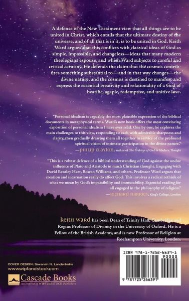 A defense of the New Testament view that all things are to be united in Christ, which entails that the ultimate destiny of the universe, and of all that is in it, is to be united in God. Keith Ward argues that this conflicts with classical ideas of God as simple, impassible, and changeless--ideas that many modern theologians espouse, and which Ward subjects to careful and critical scrutiny. He defends the claim that the cosmos contributes something substantial to--and in that way changes--the divine nature, and the cosmos is destined to manifest and express the essential creativity and relationality of a God of beatific, agapic, redemptive, and unitive love.