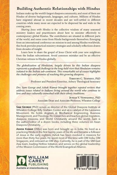 Building Authentic Relationships with Hindus Indians make up the world's largest diaspora community, and most of them are Hindus of diverse backgrounds, languages, and cultures. Millions of Hindus have migrated abroad in recent decades and are well-settled in different countries while many more are expected to be dispersed far and wide in the coming years. Many of them are highly educated and skilled, professionally successful, culturally adaptive, and very religious in their outlook. Sharing Jesus with Hindus is the collective wisdom of many seasoned ministry leaders and practitioners about how to minister effectively to contemporary global Hindus. The contributors are situated in different parts of the world, and some come from Hindu backgrounds themselves. Emerging from an international conference on mission to and among Hindus worldwide, this book provides practical ministry strategies and scholarly reflections drawn from decades of insight. The authors have experience in diasporic living and ministering to Hindus in diverse contexts. Learn how to share the gospel of Jesus Christ with your new neighbors from the Indian subcontinent. Avoid common mistakes and be an effective Christian witness to Hindus globally. Here is an essential resource in the toolkit of every church and Christian ministry worldwide.