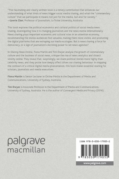 In Sharing News Online, Tim Dwyer and Fiona Martin analyse the growth of commendary culture and the business of social news, critique the rise of news analytics and dissect virality online. They reveal that surprisingly, we share political stories more highly than celebrity news, and they probe how deeply affect drives our sharing behaviour. In mapping the contours of a critical digital media phenomenon, this book makes essential reading for scholars, journalistsand media executives.