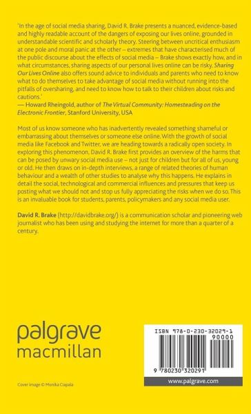 'In the age of social media sharing, David R. Brake presents a nuanced, evidence-based, and highly readable account of the dangers of exposing our lives online, grounded in understandable scientific and scholarly theory. Steering between uncritical enthusiasm at one pole and moral panic at the other - extremes that have characterized much of the public discourse about the effects of social media - Brake shows exactly how, and in what circumstances, sharing aspects of our personal lives online can be risky. Sharingour Lives Online also offers sound advice to individuals and parents who need to know what to do themselves to take advantage of social media without running into the pitfalls of oversharing, and need to know how to talk to their children about risks and cautions.' - Howard Rheingold