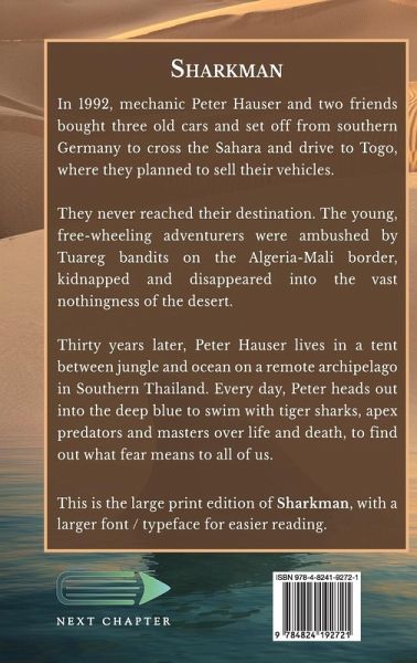 In 1992, mechanic Peter Hauser and two friends bought three old cars and set off from southern Germany to cross the Sahara and drive to Togo, where they planned to sell their vehicles. They never reached their destination. The young, free-wheeling adventurers were ambushed by Tuareg bandits on the Algeria-Mali border, kidnapped and disappeared into the vast nothingness of the desert. Thirty years later, Peter Hauser lives in a tent between jungle and ocean on a remote archipelago in Southern Thailand. Every day, Peter heads out into the deep blue to swim with tiger sharks, apex predators and masters over life and death, to find out what fear means to all of us. This is the large print edition of Sharkman, with a larger font / typeface for easier reading.