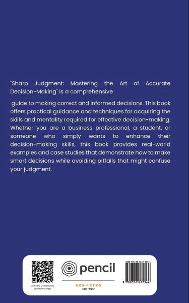 ""Sharp Judgment: Mastering the Art of Accurate Decision-Making"" is a comprehensive guide to making correct and informed decisions. This book offers practical guidance and techniques for acquiring the skills and mentality required for effective decision-making. Whether you are a business professional, a student, or someone who simply wants to enhance their decision-making skills, this book provides real-world examples and case studies that demonstrate how to make smart decisions while avoiding pitfalls that might confuse your judgment.