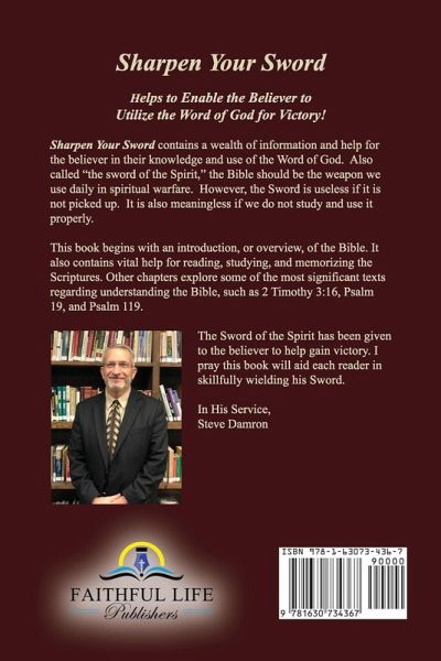 Sharpen Your Sword contains a wealth of information and help for the believer in their knowledge and use of the Word of God. Also called "the sword of the Spirit," the Bible should be the weapon we use daily in spiritual warfare. However, the Sword is useless if it is not picked up. It is also meaningless if we do not study and use it properly. This book begins with an introduction, or overview, of the Bible. It also contains vital help for reading, studying, and memorizing the Scriptures. Other chapters explore some of the most significant texts regarding understanding the Bible, such as 2 Timothy 3:16, Psalm 19, and Psalm 119. The Sword of the Spirit has been given to the believer to help gain victory. I pray this book will aid each reader in skillfully wielding his Sword.