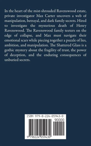 In the heart of the mist-shrouded Ravenswood estate, private investigator Max Carter uncovers a web of manipulation, betrayal, and dark family secrets. Hired to investigate the mysterious death of Henry Ravenswood. The Ravenswood family teeters on the edge of collapse, and Max must navigate their emotional scars while piecing together a puzzle of lies, ambition, and manipulation. The Shattered Glass is a gothic mystery about the fragility of trust, the power of deception, and the enduring consequences of unburied secrets.