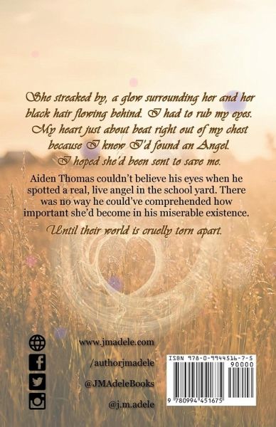 She streaked by, a glow surrounding her and her black hair flowing behind. I had to rub my eyes. My heart just about beat right out of my chest because I knew I’d found an Angel. I hoped she’d been sent to save me. Aiden Thomas couldn’t believe his eyes when he spotted a real, live angel in the school yard. There was no way he could’ve comprehended how important she’d become in his miserable existence. Until their world is cruelly torn apart. * Intended for mature audiences due to adult scenes and language. *