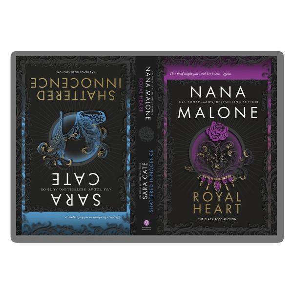 This bundle of Black Rose Auction books 5 and 6 features two exciting, spicy modern fairy tale retellings set in an elite, ultra-exclusive New York auction house. With a reversible format that smartly displays both covers for Shattered Innocence and Royal Heart, this collection of fairy tale remixes is a must-read for fans of deliciously dark romance. Welcome to the Black Rose Auction, where every sin can be yours for a price. *** For three days, the doors to this luxe New York estate are thrown wide for anyone with a taste for the obscenely rich, the ultra-exclusive, and the once-in-a-lifetime thrill of the forbidden: where nothing is off the table and everything - and everyone - can be had for the taking. In SHATTERED INNOCENCE by Sara Cate, a Cinderella remix, a woman is being auctioned off to marry the highest bidder, even though the only person she wants is her stepsister. Desperate, the two hatch a plan to have an old flame bid on her behalf...only for him to decide he's playing for keeps and wants them both. In ROYAL HEART by Nana Malone, a Beauty and the Beast remix, a woman must work with the thief she blames for her father's death to steal back a priceless royal necklace. But the dark depths of the auction are no place for unwary hearts, and soon she may be the one stolen after all... And that's just the beginning. Accept your invitation to this exclusive auction. You never know who you might see there... *** Six books, six of the best contemporary romance authors in the game. This bundle of Shattered Innocence & Royal Heart continues a riveting dark romance series in stylish fashion, perfect for romance readers and book collectors. Tropes Dark Fairy Tales Retelling Enemies to Lovers LGBTQ FFM Spicy Romance The Black Rose Auction Series: Wicked Pursuit - Katee Robert Divine Intervention - R.M. Virtues Stolen Vows - Sav R. Miller Irresistible Devil - Jenny Nordbak Shattered Innocence - Sara Cate Royal Heart - Nana Malone
