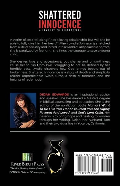 Shattered Innocence: A Journey to Restoration A victim of sex trafficking finds a loving relationship, but will she be able to fully give him her heart? When Lyndie Johnson is snatched from a life of security and forced into a world of unspeakable horrors, she is paralyzed by fear until she finds the courage to save a young child. She desires love and acceptance, but shame and unworthiness cause her to run from love. Struggling to not be defined by her horrible past, Lyndie discovers how God brings beauty out of brokenness. Shattered Innocence is a story of depth and simplicity amidst unpredictable twists, turns, a dash of romance, and the heights of redemption.