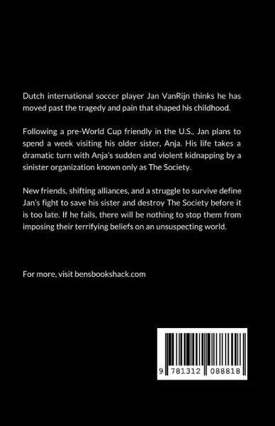 Dutch international soccer player Jan VanRijn thinks he has moved past the tragedy and pain that shaped his childhood. Following a pre-World Cup friendly in the U.S., Jan plans to spend a week visiting his older sister, Anja. His life takes a dramatic turn with Anja's sudden and violent kidnapping by a sinister organization known only as The Society. New friends, shifting alliances, and a struggle to survive define Jan's fight to save his sister and destroy The Society before it is too late. If he fails, there will be nothing to stop them from imposing their terrifying beliefs on an unsuspecting world.
