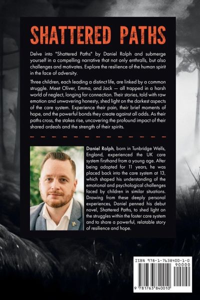 Three lives... Three paths... One shared destiny... Shattered Paths is the first instalment in a powerful trilogy that follows the intertwined lives of three children-Oliver, Emma, and Jack-each navigating the harsh realities of the foster care system. This debut novel focuses on Jack, whose world is defined by neglect, abandonment, and a relentless search for connection. His story, told with raw emotion and unwavering honesty, sheds light on the darkest aspects of the care system. Experience Jack's pain, his fleeting moments of hope, and the powerful bonds he forms with those who share his journey. Daniel Rolph, drawing from his own tumultuous journey through the UK care system, brings a deeply personal perspective to Shattered Paths. Adopted and re-entered into foster care during his youth, Rolph's debut novel is a reflection of his own experiences and those of countless others who have faced similar challenges. Through this powerful story, Daniel seeks to illuminate the often-unseen realities of foster care and child abuse and neglect, raising awareness and fostering empathy. Shattered Paths is a call for understanding and change that will resonate with readers long after the final page is turned. Get your copy today and explore the resilience of the human spirit in the face of adversity.