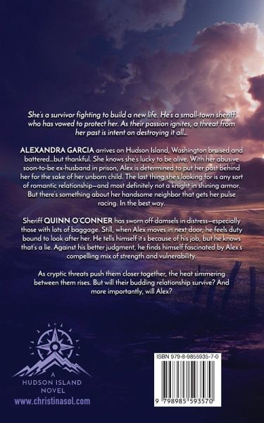 She's a survivor fighting to build a new life. He's a small-town sheriff who has vowed to protect her. As their passion ignites, a threat from her past is intent on destroying it all... Alexandra Garcia arrives on Hudson Island, Washington bruised and battered...but thankful. She knows she's lucky to be alive. With her abusive soon-to-be ex-husband in prison, Alex is determined to put her past behind her for the sake of her unborn child. The last thing she's looking for is any sort of romantic relationship-and most definitely not a knight in shining armor. But there's something about her handsome neighbor that gets her pulse racing. In the best way. Sheriff Quinn O'Conner has sworn off damsels in distress-especially those with lots of baggage. Still, when Alex moves in next door, he feels duty bound to look after her. He tells himself it's because of his job, but he knows that's a lie. Against his better judgment, he finds himself fascinated by Alex's compelling mix of strength and vulnerability. As cryptic threats push them closer together, the heat simmering between them rises. But will their budding relationship survive? And more importantly, will Alex? Author's Note: Please check the author's website for all CWs and tropes.