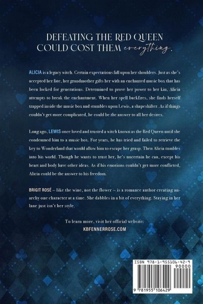 Defeating the Red Queen could cost them everything. Alicia is a legacy witch. Certain expectations fall upon her shoulders. Just as she's accepted her fate, her grandmother gifts her with an enchanted music box that has been locked for generations. Determined to prove her power to her kin, Alicia attempts to break the enchantment. When her spell backfires, she finds herself trapped inside the music box and stumbles upon Lewis, a shapeshifter. As if things couldn't get more complicated, he could be the answer to all her desires. Long ago, Lewis once loved and trusted a witch known as the Red Queen until she condemned him to a music box. For years, he has tried and failed to retrieve the key to Wonderland that would allow him to escape her grasp. Then Alicia tumbles into his world. Though he wants to trust her, he's uncertain he can, except his heart and body have other ideas. As if his emotions couldn't get more conflicted, Alicia could be the answer to his freedom.