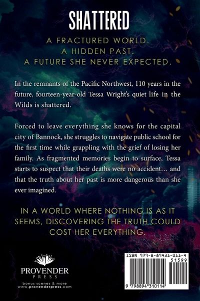 A fractured world. A hidden past. A future she never expected. It's 2134, and fourteen-year-old Tessa Wright's quiet life in the Wilds has been shattered. After the sudden death of her family, Tessa is forced to leave everything she knows and move to Bannock, a gleaming new urban center where the government promises safety, order, and genetic advancement. But public school is a shock. Her weekly Remote Thought Intervention therapy sessions are mysterious. And the students known as Elites are too perfect to be real. Her new anchor is Isaiah, a funny, caring boy who offers comfort in the chaos. But her biggest question? Why is Elite golden boy Zeke watching her like he knows something she doesn't? When fragmented memories begin to surface-memories Tessa doesn't recognize-she starts to suspect that her family's deaths weren't an accident . . . and that the truth about her past is more dangerous than she ever imagined. In a world where nothing is as it seems, discovering the truth could cost her everything. After Shattered, watch for the Merged and Forged, the next two books in the Forged series.
