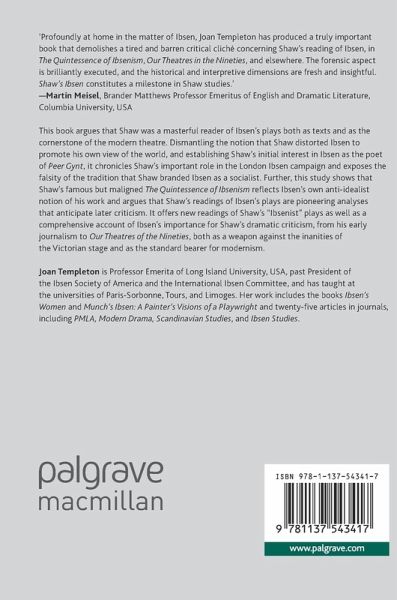 This book argues that Shaw was a masterful reader of Ibsen's plays both as texts and as the cornerstone of the modern theatre. Dismantling the notion that Shaw distorted Ibsen to promote his own view of the world, and establishing Shaw's initial interest in Ibsen as the poet of Peer Gynt, it chronicles Shaw's important role in the London Ibsen campaign and exposes the falsity of the tradition that Shaw branded Ibsen as a socialist. Further, this study shows that Shaw's famous but maligned The Quintessence of Ibsenism reflects Ibsen's own anti-idealist notion of his work and argues that Shaw's readings of Ibsen's plays are pioneering analyses that anticipate later criticism. It offers new readings of Shaw's "Ibsenist" plays as well as a comprehensive account of Ibsen's importance for Shaw's dramatic criticism, from his early journalism to Our Theatres of the Nineties, both as a weapon against the inanities of the Victorian stage and asthe standard bearer for modernism.