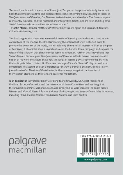 This book argues that Shaw was a masterful reader of Ibsen's plays both as texts and as the cornerstone of the modern theatre. Dismantling the notion that Shaw distorted Ibsen to promote his own view of the world, and establishing Shaw's initial interest in Ibsen as the poet of Peer Gynt, it chronicles Shaw's important role in the London Ibsen campaign and exposes the falsity of the tradition that Shaw branded Ibsen as a socialist. Further, this study shows that Shaw's famous but maligned The Quintessence of Ibsenism reflects Ibsen's own anti-idealist notion of his work and argues that Shaw's readings of Ibsen's plays are pioneering analyses that anticipate later criticism. It offers new readings of Shaw's "Ibsenist" plays as well as a comprehensive account of Ibsen's importance for Shaw's dramatic criticism, from his early journalism to Our Theatres of the Nineties, both as a weapon against the inanities of the Victorian stage and asthe standard bearer for modernism.