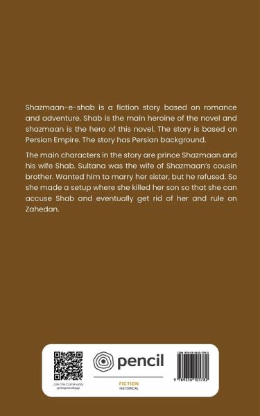 Shazmaan-e-shab is a fiction story based on romance and adventure. Shab is the main heroine of the novel and shazmaan is the hero of this novel. The story is based on Persian Empire. The story has Persian background. The main characters in the story are prince Shazmaan and his wife Shab. Sultana was the wife of Shazmaan's cousin brother. Wanted him to marry her sister, but he refused. So she made a setup where she killed her son so that she can accuse Shab and eventually get rid of her and rule on Zahedan.