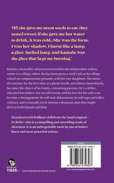 Kamala, a beautiful, self-possessed and fiercely independent widow, comes to a village, where she has been given a job on compassionate grounds, with her two daughters. She meets the narrator for the first time at a phone booth, and almost immediately, becomes the object of his lonely, consuming passion. He's a drifter, educated but jobless, low on self-esteem, and his love will become a derangement. He will seek debasement, he will rage and inflict violence, and eventually set in motion a desperate plan that might destroy both Kamala and him. Translated with brilliant skill from the Tamil original-En Kathe-this is a compelling and unsettling study of obsession. It is an unforgettable work by one of India's finest and most powerful writers.