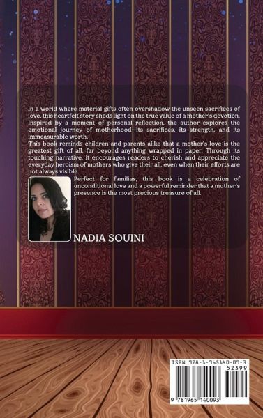 In a world where material gifts often overshadow the unseen sacrifices of love, this heartfelt story sheds light on the true value of a mother's devotion. Inspired by a moment of personal reflection, the author explores the emotional journey of motherhood-its sacrifices, its strength, and its immeasurable worth. This book reminds children and parents alike that a mother's love is the greatest gift of all, far beyond anything wrapped in paper. Through its touching narrative, it encourages readers to cherish and appreciate the everyday heroism of mothers who give their all, even when their efforts are not always visible. Perfect for families, this book is a celebration of unconditional love and a powerful reminder that a mother's presence is the most precious treasure of all.