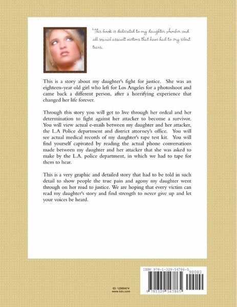 A graphic and detailed story about my daughters rape and her fight for justice. Anyone who is a victim will hopefully find strength through my daughters story to keep pushing forward and never give up hope in their fight for justice.