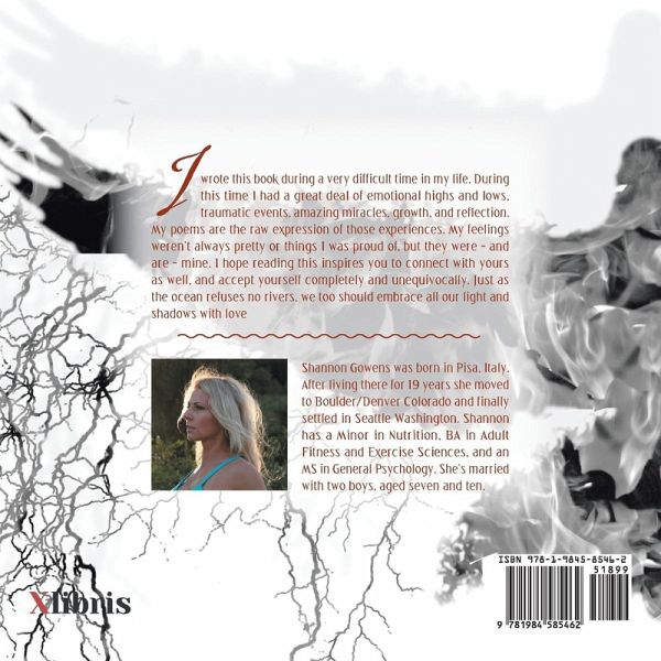 I wrote this book during a very difficult time in my life. During this time I had a great deal of emotional highs and lows, traumatic events, amazing miracles, growth, and reflection. My poems are the raw expression of those experiences. My feelings weren't always pretty or things I was proud of, but they were - and are - mine. I hope reading this inspires you to connect with yours as well, and accept yourself completely and unequivocally. Just as the ocean refuses no rivers, we too should embrace all our light and shadows with love