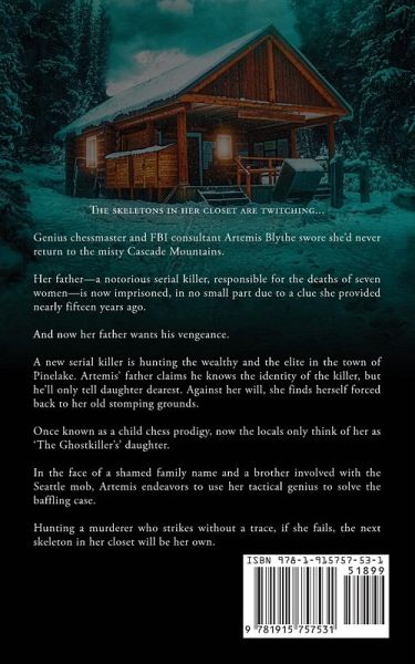 The skeletons in her closet are twitching... Genius chessmaster and FBI consultant Artemis Blythe swore she'd never return to the misty Cascade Mountains. Her father-a notorious serial killer, responsible for the deaths of seven women-is now imprisoned, in no small part due to a clue she provided nearly fifteen years ago. And now her father wants his vengeance. A new serial killer is hunting the wealthy and the elite in the town of Pinelake. Artemis' father claims he knows the identity of the killer, but he'll only tell daughter dearest. Against her will, she finds herself forced back to her old stomping grounds. Once known as a child chess prodigy, now the locals only think of her as 'The Ghostkiller's' daughter. In the face of a shamed family name and a brother involved with the Seattle mob, Artemis endeavors to use her tactical genius to solve the baffling case. Hunting a murderer who strikes without a trace, if she fails, the next skeleton in her closet will be her own.
