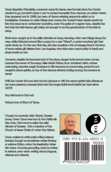 Camp Sapphire Friendship, a summer camp for teens, was the last place the Hunter wanted to go, but she'd made a vow to protect humanity from demons, no matter where they appeared and in 1986, her team of demon-slaying experts is called on to investigate. However, to make things even worse, the Hunter's team leader sends her into the camp as an undercover operative, under the guise of a regular teen, despite the fact that the half-demon girl being old enough to be the grandmother of the kids at camp. She's soon caught up in the daily minutiae of camp, learning a few new things along the way, while followed around like a puppy by a new "friend", a motor-mouthed girl that never shuts up. On the very first day, she also acquires a trio of teenage foes in the form of some valley-girl sisters from Los Angeles, who take every opportunity to insult and plays pranks on her. However, despite the innocent look of the place, danger lurks around every corner, because the owner of the camp, Miss Macie Weber, is an untrained witch, whose unknowing, haywire magic threatens to kill everyone by summoning powerful and vengeful nature spirits, on top of the demons already lurking among the humans at camp! Will the Hunter find and slay the the demons or will the nature spirits take offense at her mere presence, because she's had the Jungle Spirit stuck inside her head since 1972? Download today and find out! Volume two of Short of Tyme. Approximately 39,000 words.