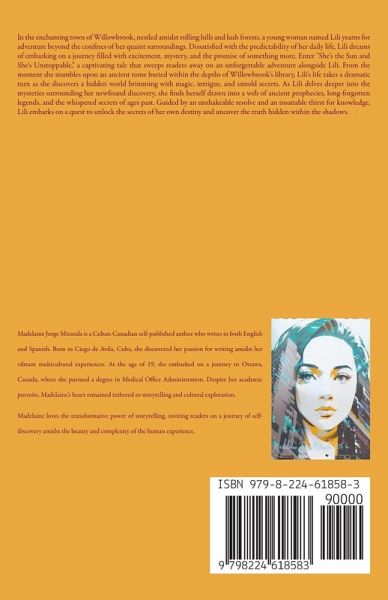 In the enchanting town of Willowbrook, nestled amidst rolling hills and lush forests, a young woman named Lili yearns for adventure beyond the confines of her quaint surroundings. Dissatisfied with the predictability of her daily life, Lili dreams of embarking on a journey filled with excitement, mystery, and the promise of something more. Enter "She's the Sun and She's Unstoppable," a captivating tale that sweeps readers away on an unforgettable adventure alongside Lili. From the moment she stumbles upon an ancient tome buried within the depths of Willowbrook's library, Lili's life takes a dramatic turn as she discovers a hidden world brimming with magic, intrigue, and untold secrets. As Lili delves deeper into the mysteries surrounding her newfound discovery, she finds herself drawn into a web of ancient prophecies, long-forgotten legends, and the whispered secrets of ages past. Guided by an unshakeable resolve and an insatiable thirst for knowledge, Lili embarks on a quest to unlock the secrets of her own destiny and uncover the truth hidden within the shadows. From the towering spires of forgotten temples to the depths of enchanted forests teeming with mystical creatures, Lili's journey is fraught with danger, yet she presses on undeterred, her spirit aflame with the fire of determination and the unwavering belief that she is destined for greatness. But Lili is not alone on her journey. Along the way, she encounters a colourful cast of characters, each with their own unique strengths, weaknesses, and motivations. From wise mentors who offer guidance and wisdom to unlikely allies who stand by her side through thick and thin, Lili learns that true strength lies not in the power of one, but in the bonds of friendship and the unity of purpose. As the stakes grow higher and the challenges more daunting, Lili's resilience is put to the test like never before. But with each obstacle she overcomes, she emerges stronger, more determined, and more unstoppable than ever before. Filled with heart-pounding action, pulse-pounding suspense, and breathtaking moments of triumph, "She's the Sun and She's Unstoppable" is a spellbinding journey of self-discovery, empowerment, and the indomitable spirit of the human soul.