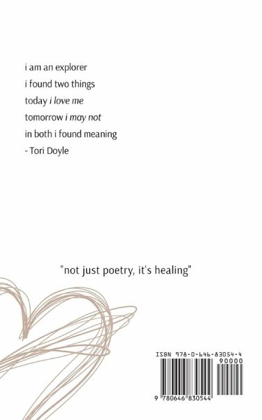 "She Loves Me Not" is a collection of self love poetry. Take a journey through these five stages of healing as depicted by one woman's inner child, as she navigates to become a woman of love & purpose. o Nurture o Explore o Accept o Personal Power o Love & Connection You the reader can explore all five journey stages, allowing you to add your thoughts and reflections in the "she loves me notes" at the end of this book. Tori has unapologetically written from a visual perspective of a "dyslexian", free verse and free in interpretation, with and without words. Illustrations Illustrations in this book have been drawn by Tori Doyle and represent an expression of each poem. Tori uses art to express how she sees emotion, "writing without words". Her tribute to all those with learning challenges. The female characters in this book are all called Daisy, she is the centre of her world. She comes in all shapes and from all walks of life, beliefs, values, and shares a common thread, which is to heal, love and connect. She is perfect, because she is one of one, she cannot compare to any other. She is beautiful, strong, resilient, and okay not to be okay some days. She picks out her own thoughts, just like picking Daisy's petals. "She loves me today, tomorrow she may not"