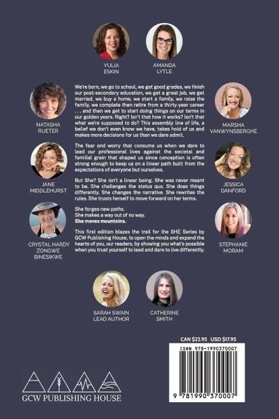 We're born, we go to school, we get good grades, we finish our post secondary education, we get a great job, we get married, we buy a home, we start a family, we raise the family, we complete and retire from a 30 year career and then we get to start doing things on our terms in our golden years. Right? Isn't that how it works? Isn't that what we're supposed to do? This assembly line of life, a belief we don't even know we hold, grips us so tightly and makes more decisions for us than we dare admit. The fear and worry that consume us when we dare to lead our professional lives against the societal and familial grain that shaped our lives since conception is often strong enough to keep us on a linear path built from the expectations of everyone but ourselves. But She? She isn't a linear being. She was never meant to be. She challenges the status quo. She does things differently. She changes the narrative. She rewrites the rules. She trusts herself to move forward on her terms. She forges new paths. She makes a way out of no way. She moves mountains. This first edition blazes the trail for the SHE Series by GCW Publishing House, to open the minds and expand the hearts of you, our readers, by showing you what's possible when you trust yourself to lead and dare to live differently. ¿