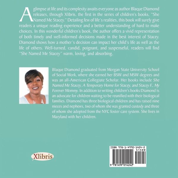 A glimpse at life and its complexity awaits everyone as author Blaque Diamond releases, through Xlibris, the first in the series of children's books, "She Named Me Stacey." Detailing few of life's realities, this book will surely give readers a unique reading experience and a better understanding of hard to make choices. In this wonderful children's book, the author offers a vivid representation of both timely and well-informed decisions made in the best interest of Stacey. Diamond shows how a mother's decision can impact her child's life as well as the life of others. Well-turned, candid, poignant, and suspenseful, readers will find "She Named Me Stacey" warm, loving, and absorbing.