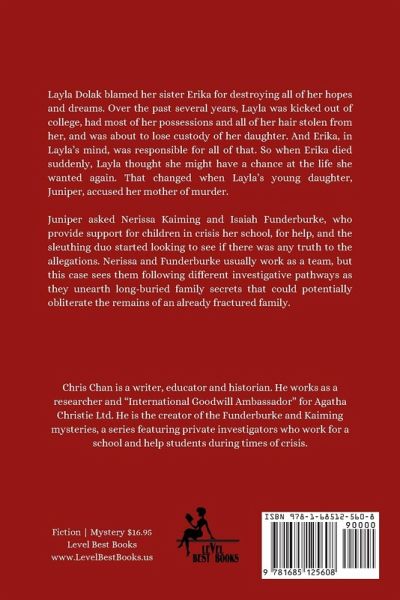 Layla Dolak blamed her sister Erika for destroying all of her hopes and dreams. Over the past several years, Layla was kicked out of college, had most of her possessions and all of her hair stolen from her, and was about to lose custody of her daughter. And Erika, in Layla's mind, was responsible for all of that. So when Erika died suddenly, Layla thought she might have a chance at the life she wanted again. That changed when Layla's young daughter, Juniper, accused her mother of murder. Juniper asked Nerissa Kaiming and Isaiah Funderburke, who provide support for children in crisis her school, for help, and the sleuthing duo started looking to see if there was any truth to the allegations. Nerissa and Funderburke usually work as a team, but this case sees them following different investigative pathways as they unearth long-buried family secrets that could potentially obliterate the remains of an already fractured family.