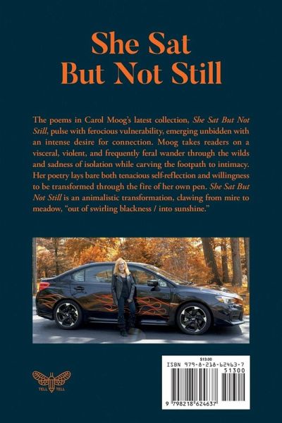 The poems in Carol Moog's latest collection, She Sat But Not Still, pulse with ferocious vulnerability, emerging unbidden with an intense desire for connection. Moog takes readers on a visceral, violent, and frequently feral wander through the wilds and sadness of isolation while carving the footpath to intimacy. Her poetry lays bare both tenacious self-reflection and willingness to be transformed through the fire of her own pen. She Sat But Not Still is an animalistic transformation, clawing from mire to meadow, "out of swirling blackness / into sunshine."