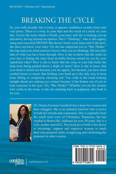 Why do women feel the need to compete, compare, undermine, and undercut one another? Why do we feel on guard and on the defensive with other women? We all are adequate; we all are unique; we all are brilliant, gorgeous, fabulous, and talented in our own right. Too often we make unfounded presumptions about one another. We become mind readers. When we attempt to read someone's mind, we assume we know what they think or feel without direct evidence. Mind-reading often leads to confusion, resentment, and frustration and sets the stage for "she thinks." How many of you have heard the term in reference to yourself, "she thinks," and the sadder aspect of it, how many of us have said it about our sistahs. Each one of us has the power to break that stereotype, to start engaging in honest dialogue about, "she thinks." I invite each of you as you read this book to delve into your psyche to understand where and why this mindset starts, so that we can begin to break the cycle of "she thinks."