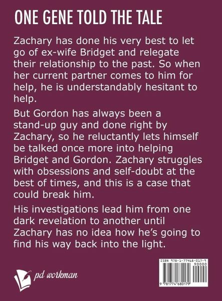 From USA Today Bestselling Author, P.D. Workman! One gene told the tale Zachary has done his very best to let go of ex-wife Bridget and relegate their relationship to the past. So when her current partner comes to him for help, he is understandably hesitant to help. But Gordon has always been a stand-up guy and done right by Zachary, so he reluctantly lets himself be talked once more into helping Bridget and Gordon. Zachary struggles with obsessions and self-doubt at the best of times, and this is a case that could break him. His investigations lead him from one dark revelation to another…mehr