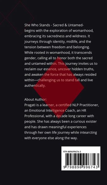 She Who Stands - Sacred & Untamed invites you on a transformative journey to reconnect with the powerful force within you a force that whispers softly in moments of stillness and roars fiercely in the chaos of life. This book dives deep into the essence of womanhood, where the sacred and the wild are intricately woven together, creating a balance between freedom and belonging. It challenges you to question the roles you've been given and embrace the truth of who you truly are, beyond the confines of societal expectations. Through the lens of identity, motherhood, and the quiet rebellion of midlife, you will uncover truths that both empower and disrupt. Each page is an invitation to step into your authentic self, to embrace the sacred and untamed within, and to rediscover the essence of who you are before the world shaped you. She Who Stands is more than just a book; it is a powerful reminder to honor your wildness, your strength, and your truth. In these pages, you are invited to stand tall, to embrace your full humanity, and to awaken the force that has always been there, quietly waiting for you to notice. This is your call to reclaim your power, to live authentically, and to remember that you are more than enough, just as you are. The author brings her understanding of how women around her navigated these complexities, weaving their stories into a narrative that will resonate deeply with you. Welcome to the journey of remembering & reclaiming our sacred, untamed truth.