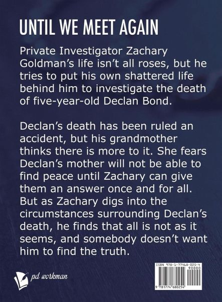 From USA Today Bestselling Author, P.D. Workman! A dead child. A mother deep in mourning. Private Investigator Zachary Goldman's life isn't all roses, but he tries to put his own shattered life behind him to investigate the death of five-year-old Declan Bond. Declan's death has been ruled an accident, but his grandmother thinks there is more to it. She fears Declan's mother will not be able to find peace until Zachary can give them an answer once and for all. But as Zachary digs into the circumstances surrounding Declan's death, he finds that all is not as it seems, and somebody doesn't want him to find the truth. Free first in series ¿¿¿¿¿¿¿¿¿¿ Psychologically complex and gripping ... Zachary must deal with his own psychological issues as well as those of the child's parents along with attempts on his life. I'm binge reading this series. Zachary Goldman, Private Investigator, is flawed with a capital F. Shattered by the tragedies of his own life, he will somehow still manage to pick himself up and dig just a little bit deeper than anyone else to find the vital clues. Maybe being broken makes it easier for others who have faced tragedy to trust him. Walk with Zachary as he solves cases that will stretch his abilities to the limit. Even with his own life in shambles, Zachary Goldman is still the one you want on the case. Investigate this P.I. mystery now!