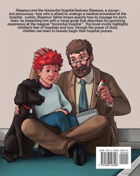"Sheamus and the Horizontal Hospital" features Sheamus, a young-but precocious-boy who is afraid to undergo a medical procedure at the hospital. Luckily, Sheamus' father knows exactly how to assuage his son's fears: by presenting him with a visual guide that describes his upcoming experience at the magical "horizontal hospital." This book vividly highlights children's fear of hospitals and how, through the power of story, children can learn to bravely begin their hospital journey.