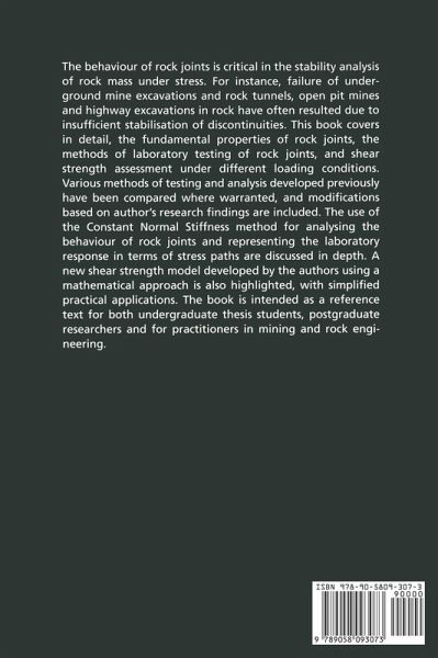 This title covers the fundamental properties of rock joints, the method of laboratory testing of rock joints, and shear strength assessment under different loading conditions. This work is intended as a reference text for students and practitioners in mining and rock engineering.