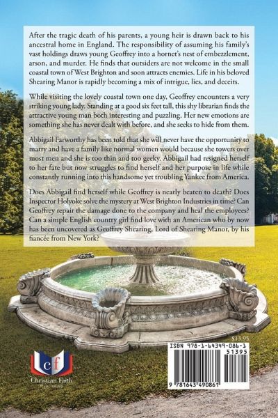 After the tragic death of his parents, a young heir is drawn back to his ancestral home in England. The responsibility of assuming his family's vast holdings draws young Geoffrey into a hornet's nest embezzlement, arson, and murder. He finds that outsiders are not welcome in the small coastal town of West Brighton and soon attracts enemies. Life in his beloved Shearing Manor is rapidly becoming a mix of intrigue, lies, and deceits. While visiting the lovely coastal town one day, Geoffrey encounters a very striking young lady. Standing at a good six feet tall, this shy librarian finds the attractive young man both interesting and puzzling. Her new emotions are something she has never dealt with before, and she seeks to hide from them. Abbigail Farworthy has been told that she will never have the opportunity to marry and have a family like normal women would because she towers over most men and she is too thin and too geeky. Abbigail had resigned herself to her fate but now struggles to find herself and her purpose in life while constantly running into this handsome yet troubling Yankee from America. Does Abbigail find herself while Geoffrey is nearly beaten to death? Does Inspector Holyoke solve the mystery at West Brighton Industries in time? Can Geoffrey repair the damage done to the company and heal the employees? Can a simple English country girl find love with an American who by now has been uncovered as Geoffrey Shearing, Lord of Shearing Manor, by his fiancée from New York?