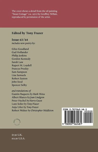 Shearsman magazine has been running in a pamphlet-sized format for 15 years, and this double-issue marks a move into perfect-bound paperback format. Frequency moves from quarterly to half-yearly at thr same time. Issue 63/64 includes work by Frances Presley, Lisa Samuels, Sarah Law, Robert Saxton, John Seed, Gad Hollander, Sam Sampson, Philip Jenkins, Spencer Selby, Gordon Kennedy, Rupert M. Loydell, Giles Goodland, Gaston Baquero (translated by Mark Weiss), Alberto Blanco (translated by Joan Lindgren), plus translations from the German by Christopher MIddleton, Harry Guest and Tony Frazer.
