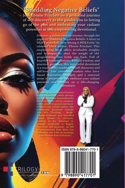 "Shedding Negative Beliefs" Join Ebonie Pritchett on a profound journey of self-discovery as she guides you in letting go of the past and embracing your radiant potential in this empowering devotional. Discover a transformative journey through the pages of "Shedding Negative Beliefs: A Letter to HER Future Self: How Strong is HER Faith," by talented black author, Ebonie Pritchett. This empowering book offers invaluable insights and strategies to shed the weight of old programming that holds you back. Full of heartfelt contemplations, Biblical wisdom, and practical guidance, this wonderful devotional is a trustworthy roadmap to self-discovery and self-love. Join countless readers who have found inspiration, strength, and a renewed sense of purpose as you embrace your radiant potential and embark on a life-changing adventure.